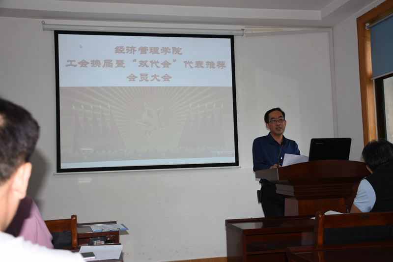 6月14日下午,秀人网 举行“学院工会换届大会暨‘双代会’代表推荐会员大会”,选举产生秀人网 新一届工会委员会和“双代会”代表,会议由党总支书记王者旭主持,全院教职工参加。