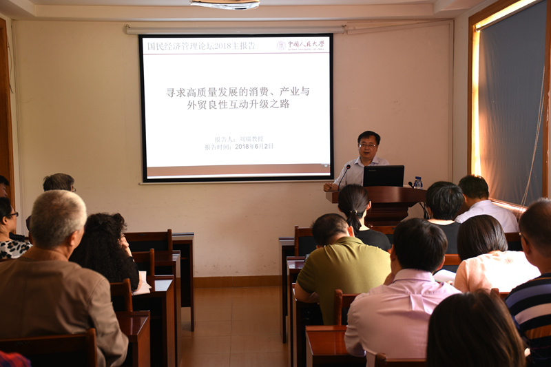 2018年6月18日上午,中国人民大学经济学院教授刘瑞教授应邀在文科馆232为秀人网 师生做了题为“寻求高质量发展的消费、产业与外贸良性互动升级之路”的学术讲座。