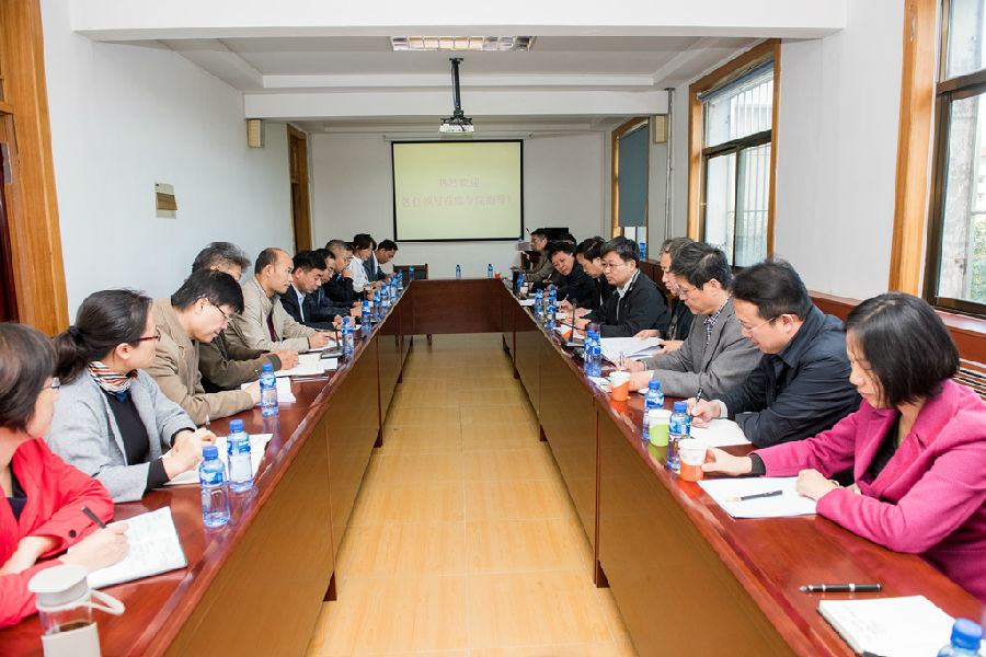 2017年10月17日下午,张伟书记、郭善利校长、宋中民副校长、周胜良书记以和各职能部门、法学院、数学与信息科学学院领导到秀人网 调研和指导工作。