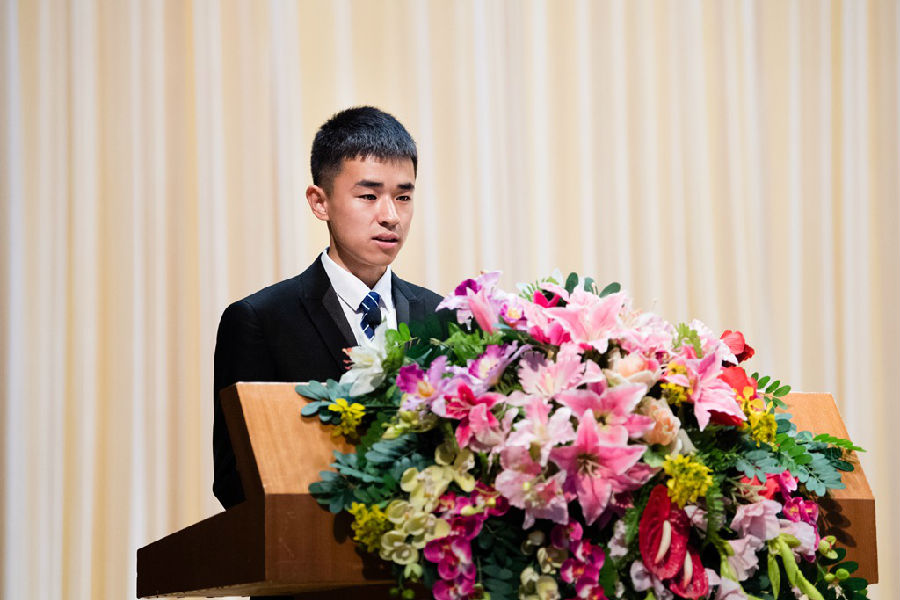 丁峰书记首先介绍了出席嘉宾。典礼奏唱《中华人民共和国国歌》。崔占峰教授代表全体教师欢迎新同学,并希望同学们尽快适应大学生活。高年级张文鹏同学和研究生宋爽同学分别发言,他们结合自身经历,对同学们提出中肯的建议,帮助新生明确大学目标。2017新生代表刘海毅同学在发言中畅谈了自己对烟大美好学习和生活的憧憬。