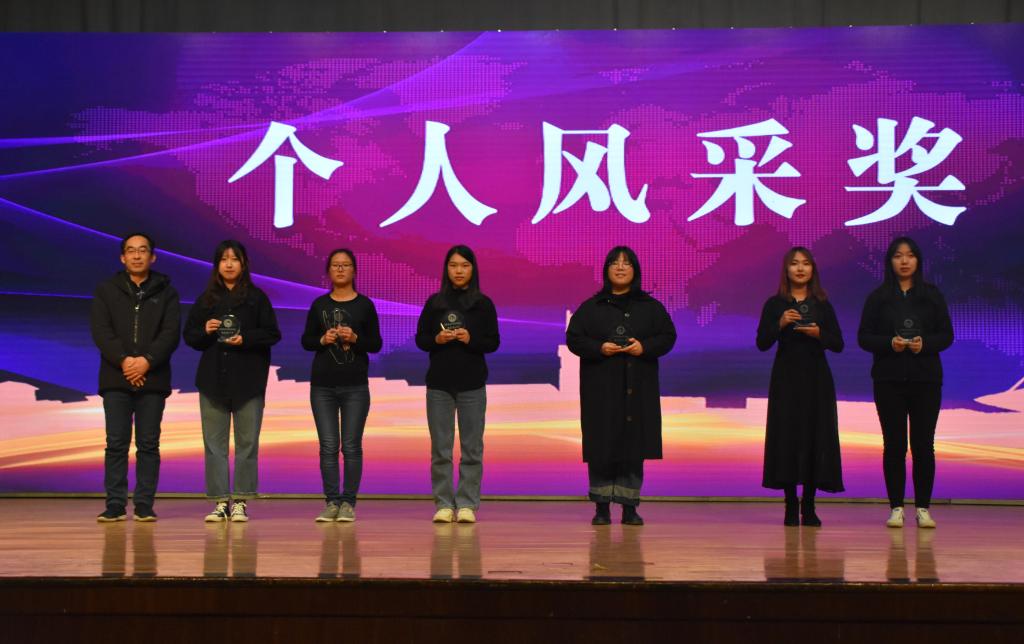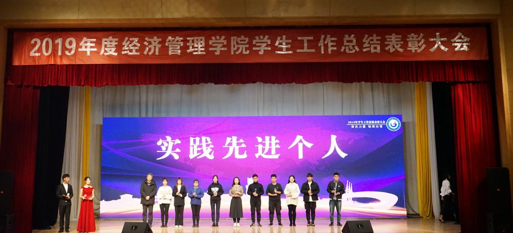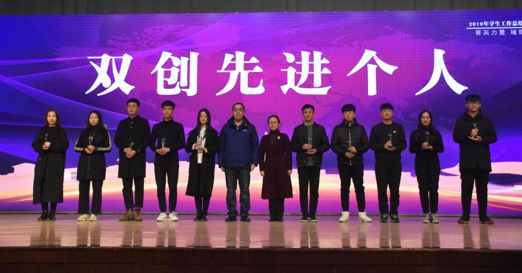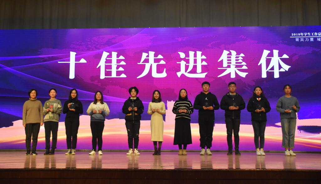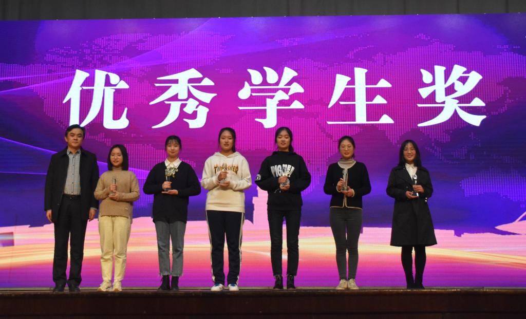 的学生工作。本次表彰大会颁奖环节分为奖学金、创新创业、先进集体、社会志愿与志愿服务、校园活动五个部分;风采展示打破传统形式,融入歌舞、小品、朗诵,展现新时代青年学生斗志昂扬的精神风貌和勇于担责的家国情怀。优秀学生代表崔明月穿插法语、英语、汉语三种语言分享了自己的学习心得;双创先进个人吴浩宇汇报了挑战杯参赛经历,鼓励同学们投身到各项科创竞赛中;红旗团支部经171-2班同学们演绎的班级故事赢得观众阵阵掌声,充满正能量的剧情激励同学们对标先进;朗诵《青春榜样 前行力量》,展现了我院学子用行动践行初心使命,向祖国七十华诞献礼。随着歌曲《无限可能》旋律响起,表彰大会接近尾声。