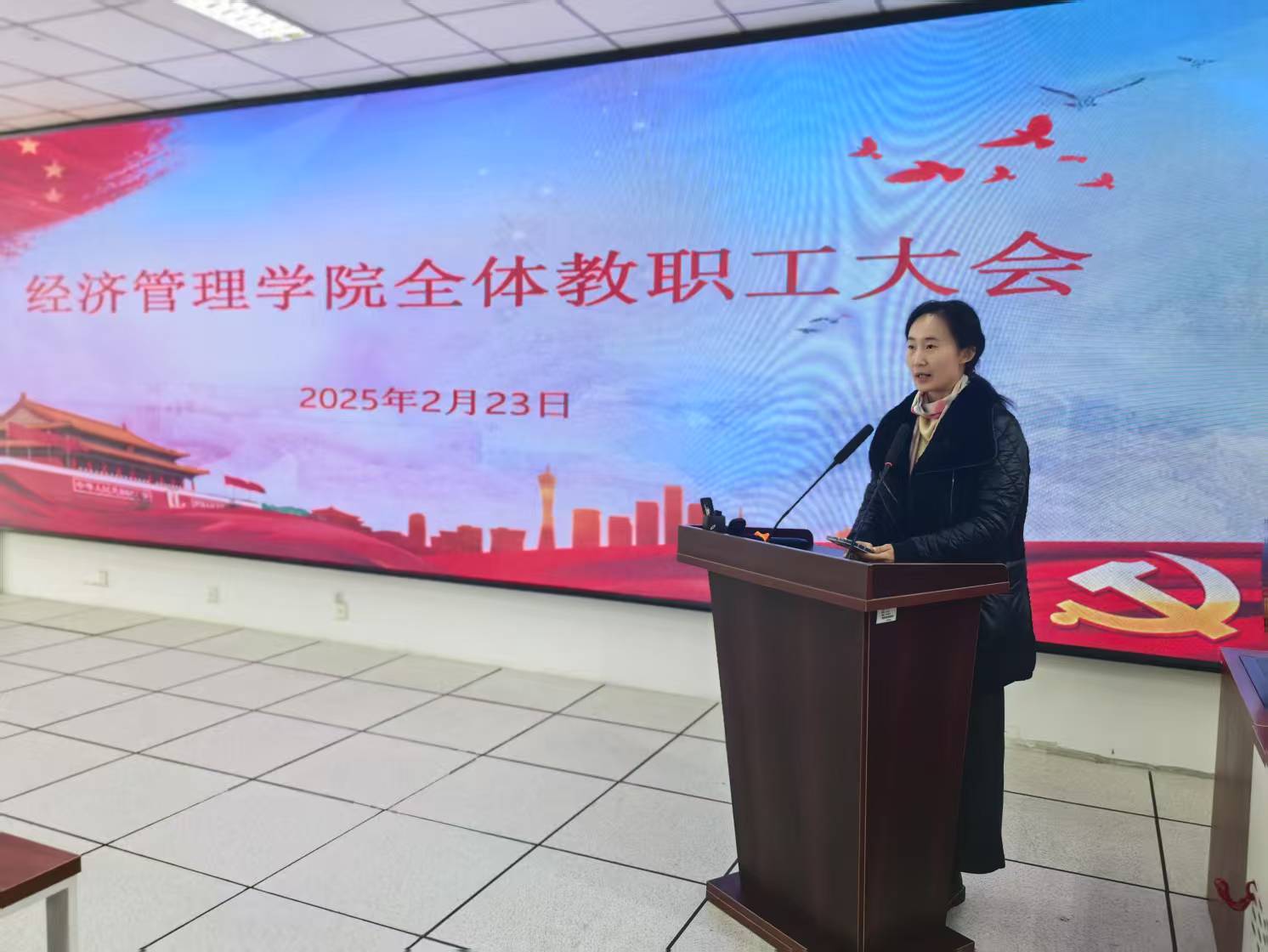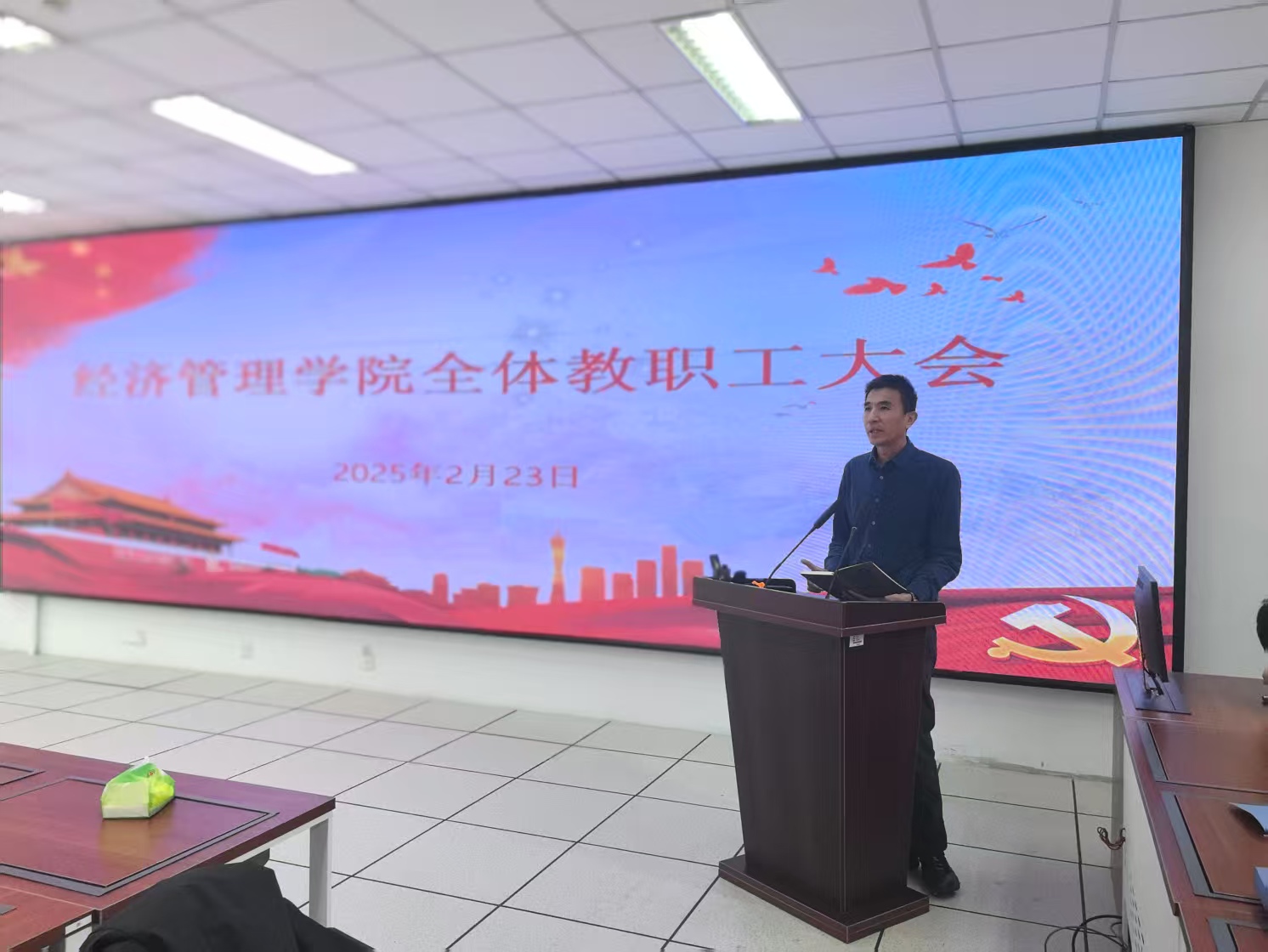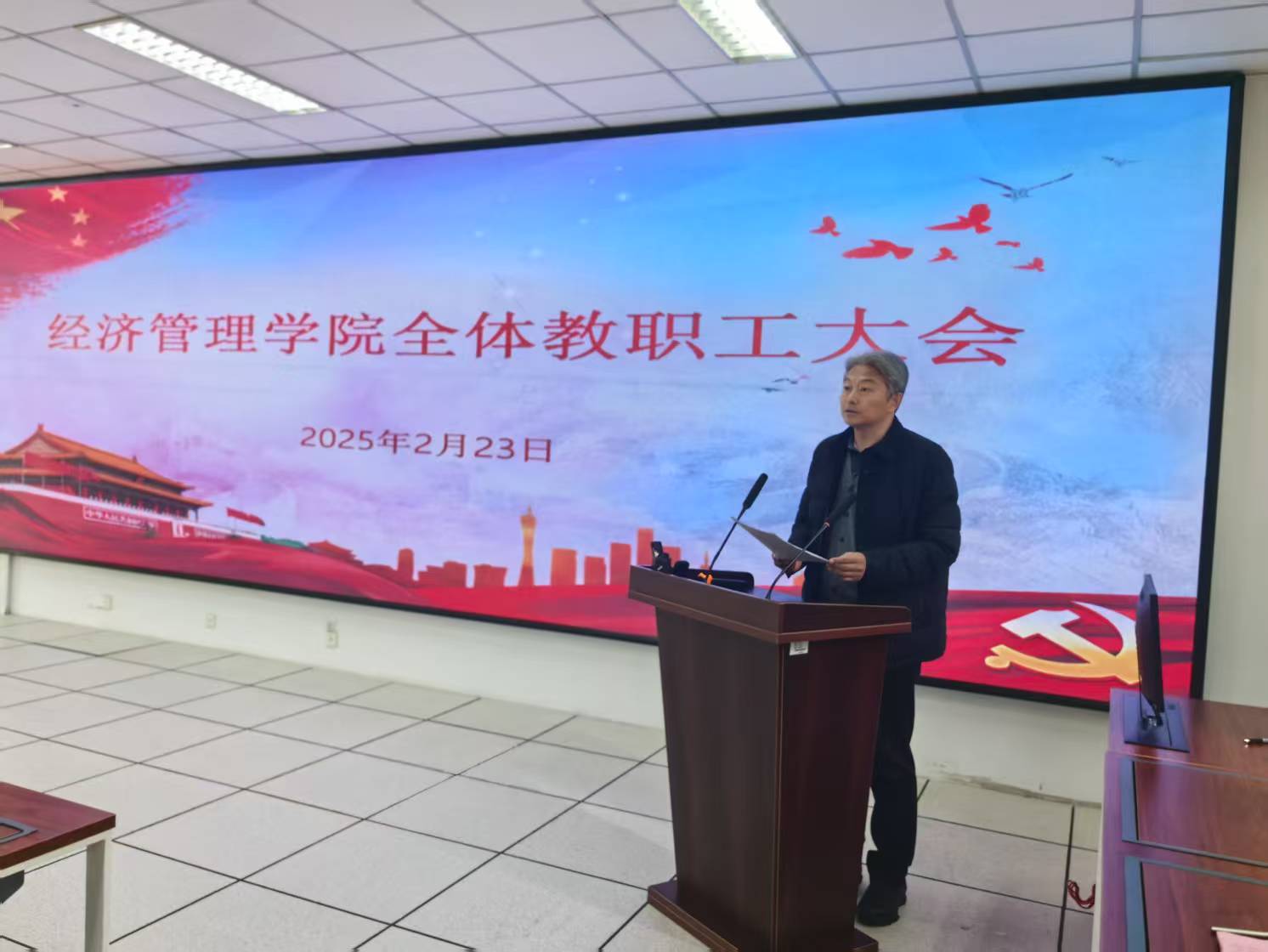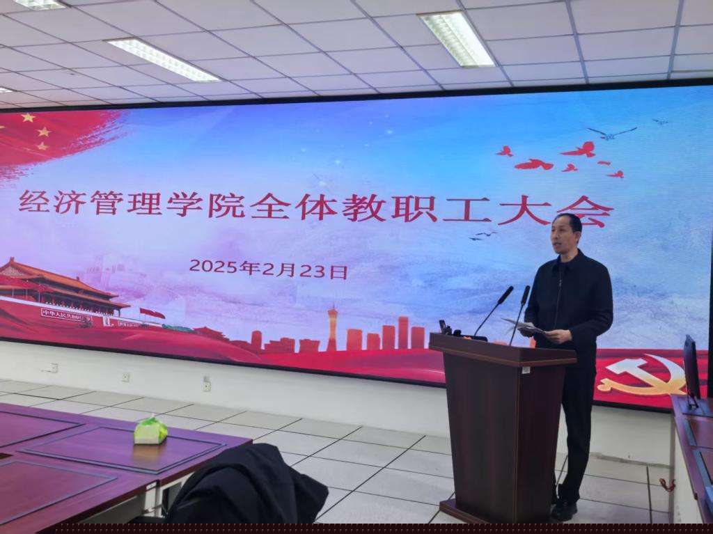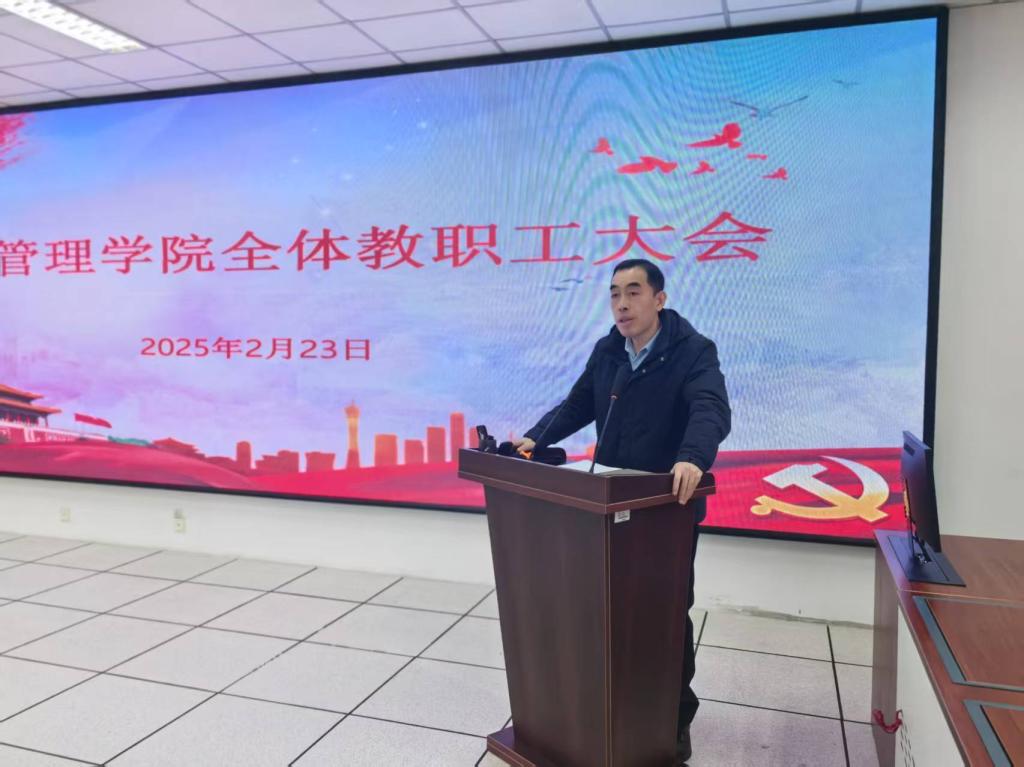 将全面落实学校党委“一五八一”总体部署,认真贯彻学校2025年工作研讨会精神,抓紧抓牢改革提质主题主线,进一步统一思想共识、凝聚发展合力,为高水平大学建设贡献经管力量。