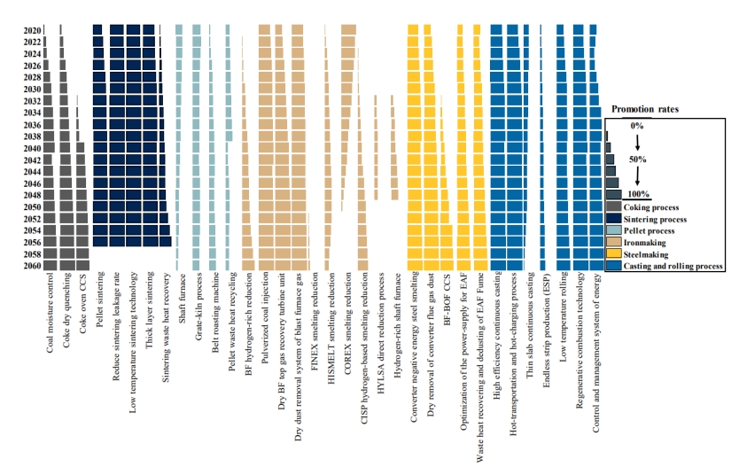 图1 综合情景下钢铁行业节能技术发展路径