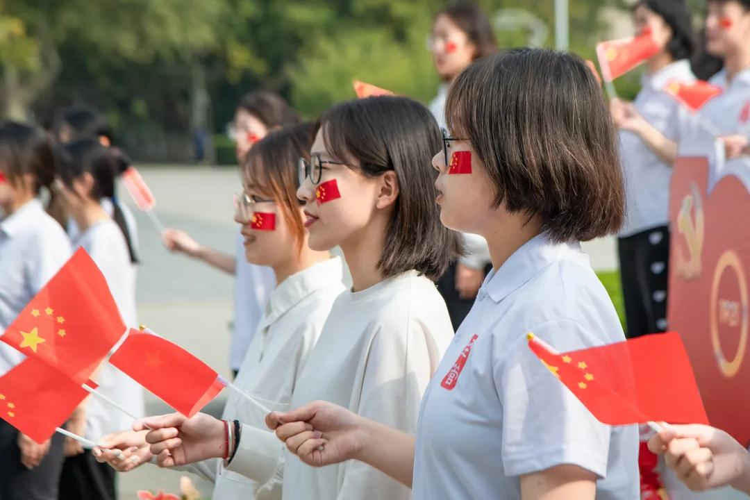 永葆一颗热爱祖国的赤子之心,谱好的责任担当之曲。在国庆节来临之际,学院组织开展形式多样的庆祝活动。团委、学生会同学们组织新生开展“青春告白祖国”活动以及“我与祖国合张影”活动,同学们手持“我爱你祖国”“青春告白祖国”“请党放心强国有我”“祝福祖国”等标语牌,在烟大校园内打卡,诚挚地祝福祖国母亲永远昌盛繁荣。用音乐回顾历史,用歌声激发初心。“五星红旗迎风飘扬,胜利歌声多么响亮……”随着气势恢宏的旋律,新生同学们聚集在 “升腾”,挥舞着手中的国旗,随着音乐放声高歌《歌唱祖国》,表达着对祖国的热爱和美好憧憬。