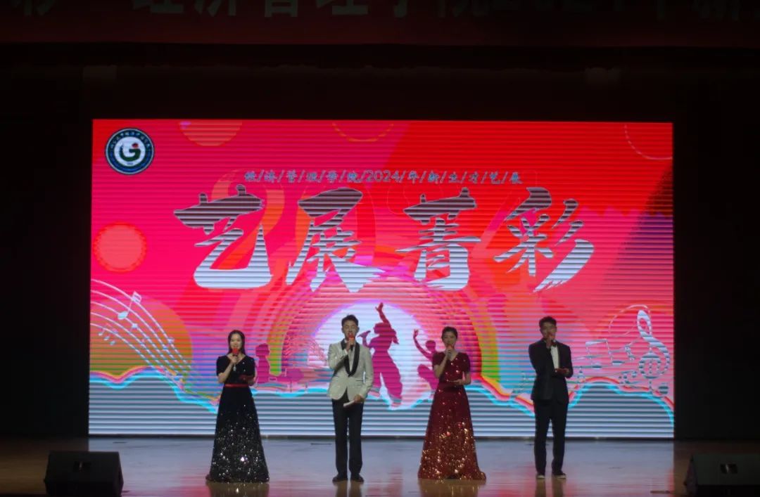 在弘毅厅举办“艺展菁彩”新生才艺展。学院党总支书记张广毅、副处级组织员姜波、教师代表及2024级研究生、本科生新生参加。