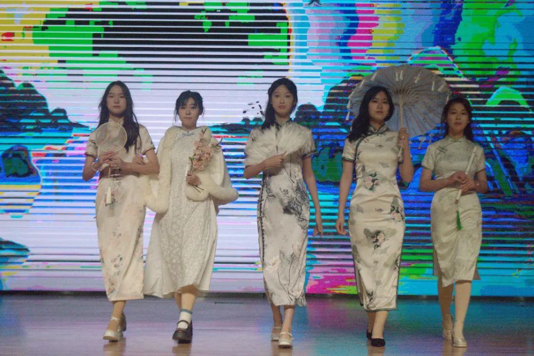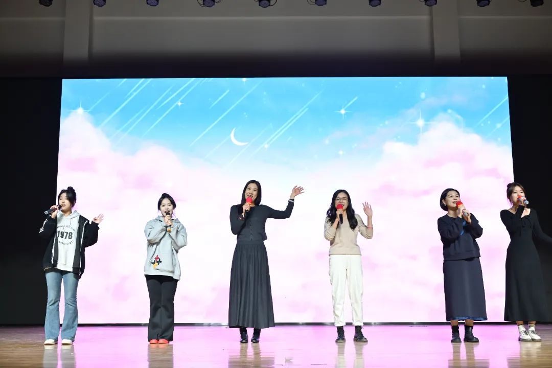 第一篇章中,歌曲联唱《声梦启航》带大家走进这场青春的旅程,熟悉的旋律响起,唤醒心中的梦想与激情。研究生带来的歌舞《一起向未来》澎湃着青春的热血,展现了风华正茂的朝气,饱含着对未来美好的期待。器乐舞蹈《敦煌伎乐天》以舞传情,以情感人,营造出神秘又震撼的氛围,让观众沉浸式深入敦煌文化之中。第二篇章中,歌曲走秀《广寒宫》以动听的曲调和自信的步伐,充分彰显东方风韵,用华服之美传承千年文化。折射拖延现象的话剧《消失的周日》笑点十足,引发同学们对拖延现象的深刻反思。新生导助带来的舞蹈《阳光男孩阳光女孩》动感十足、活力无限,记忆瞬间拉回到初入大学军训时的“迷彩”时光。第三篇章中,师生朗诵《四秩礼赞》以饱含深情、铿锵有力的言语,赞颂了秀人网