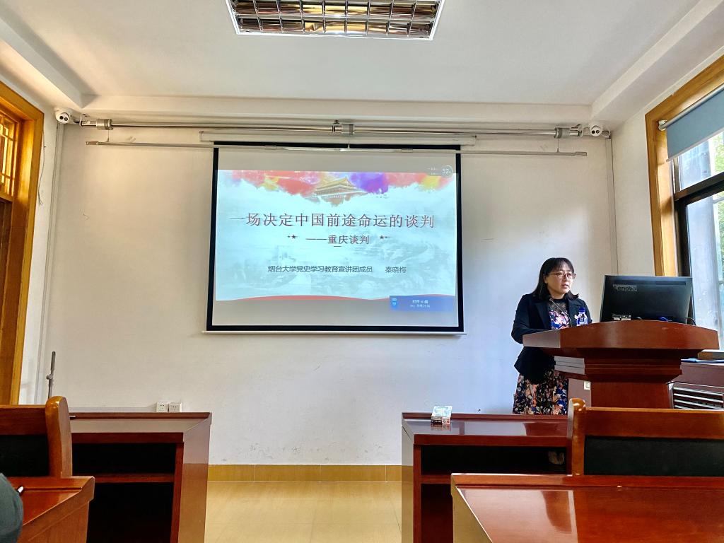 与思政教育相结合,注重用好党史“教科书”。学院邀请学校党史教育宣讲团成员秦晓梅为经管师生讲思政课,以“重庆谈判”这一历史事件为切入点,带领大家深度领会中国共产党建立的复杂过程和伟大意义,学习共产党领袖高瞻远瞩、运筹帷幄,以勇毅睿智的决断部署领航定向的崇高思想境界和浩然革命正气,引导广大师生自觉感党恩听党话跟党走。