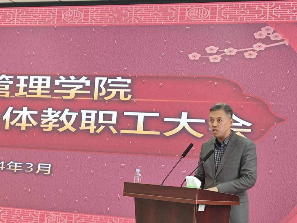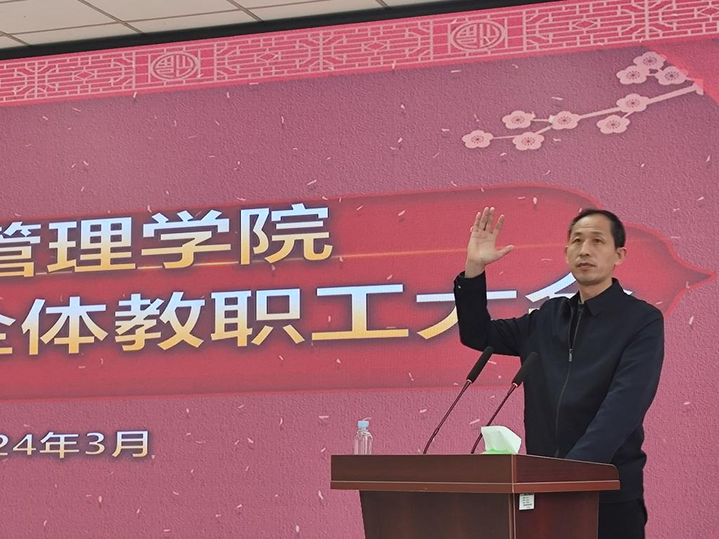 2024年度全体教职工大会在综合楼307召开。学院全体教职工参加,大会由学院党总支书记张广毅主持。